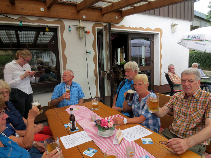 Im "Restaurant Vedder" --- Wanderführer Ditmar (3. v. re.)